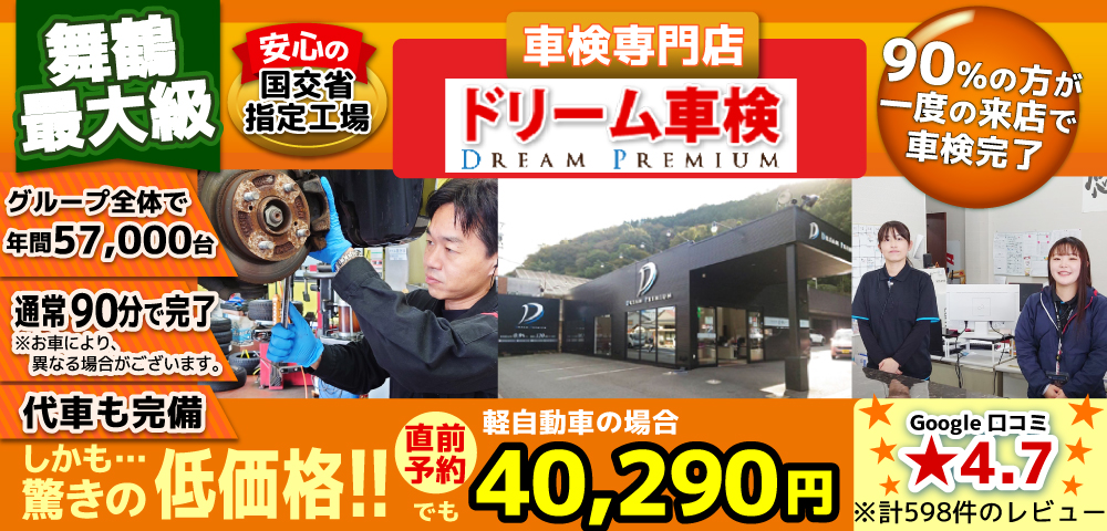 【ドリーム車検舞鶴店】舞鶴・宮津・高浜で4.0万円の車検