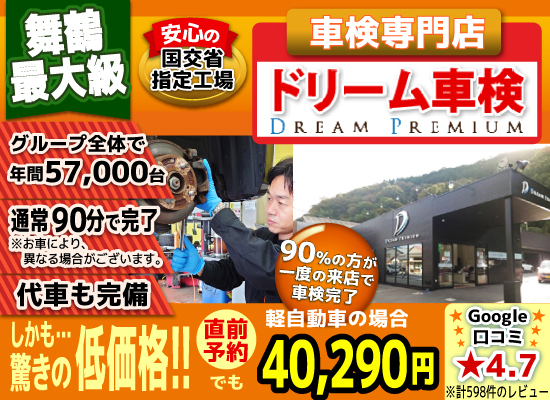 【ドリーム車検舞鶴店】舞鶴・宮津・高浜で4.0万円の車検